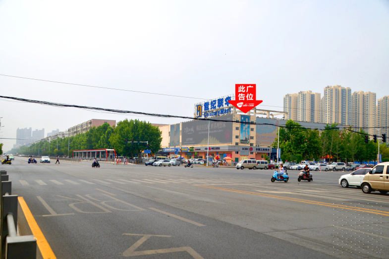 长江路与大学路交汇处世纪联华墙面大牌